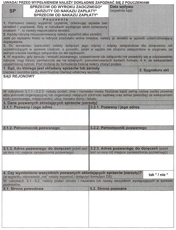 Dodatkowo możesz – Pobierz druk – sprzeciw od nakazu zapłaty